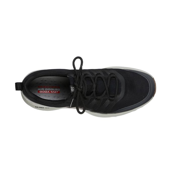 طبيعة الجزء العلوي (صناعي) تضمن المرونة لتسهيل المشي والتخلص الجيد من العرق. يوفر نعل سكيتشرز دعمًا للقدم وامتصاص الصدمات والثبات على التضاريس والممرات غير المستوية.