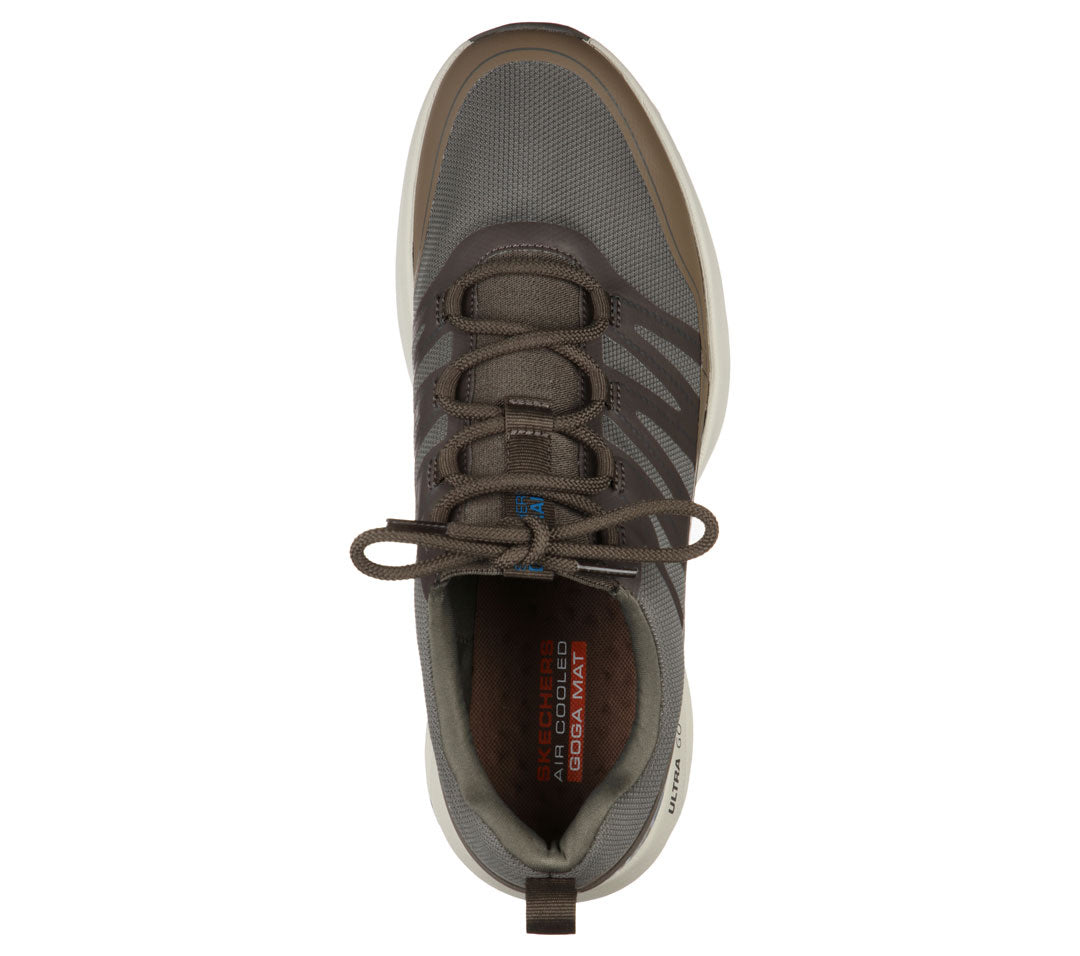 طبيعة الجزء العلوي (صناعي) تضمن المرونة لتسهيل المشي والتخلص الجيد من العرق. يوفر نعل سكيتشرز دعمًا للقدم وامتصاص الصدمات والثبات على التضاريس والممرات غير المستوية.