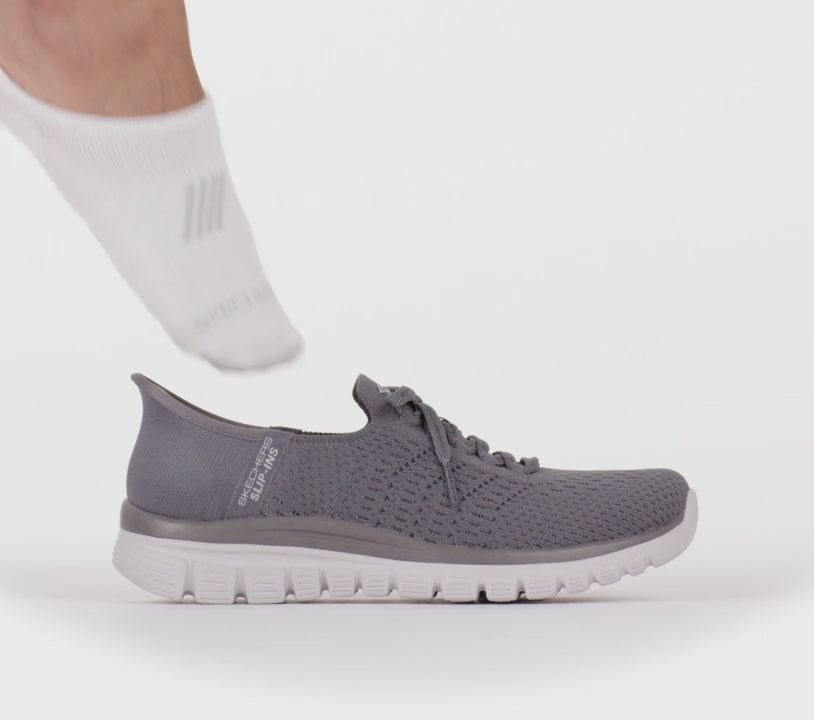 Offrez à vos pieds le confort ultime avec la Skechers Hands Free Slip-ins® Graceful - First Blush. Conçu avec notre Heel Pillow™ exclusif, ce modèle No Tie Fit est doté d’une tige en maille technique Stretch Fit®, de lacets décoratifs et d’une semelle intérieure en mousse à mémoire de forme Skechers Air-Cooled Memory Foam® aérée coussinée.
