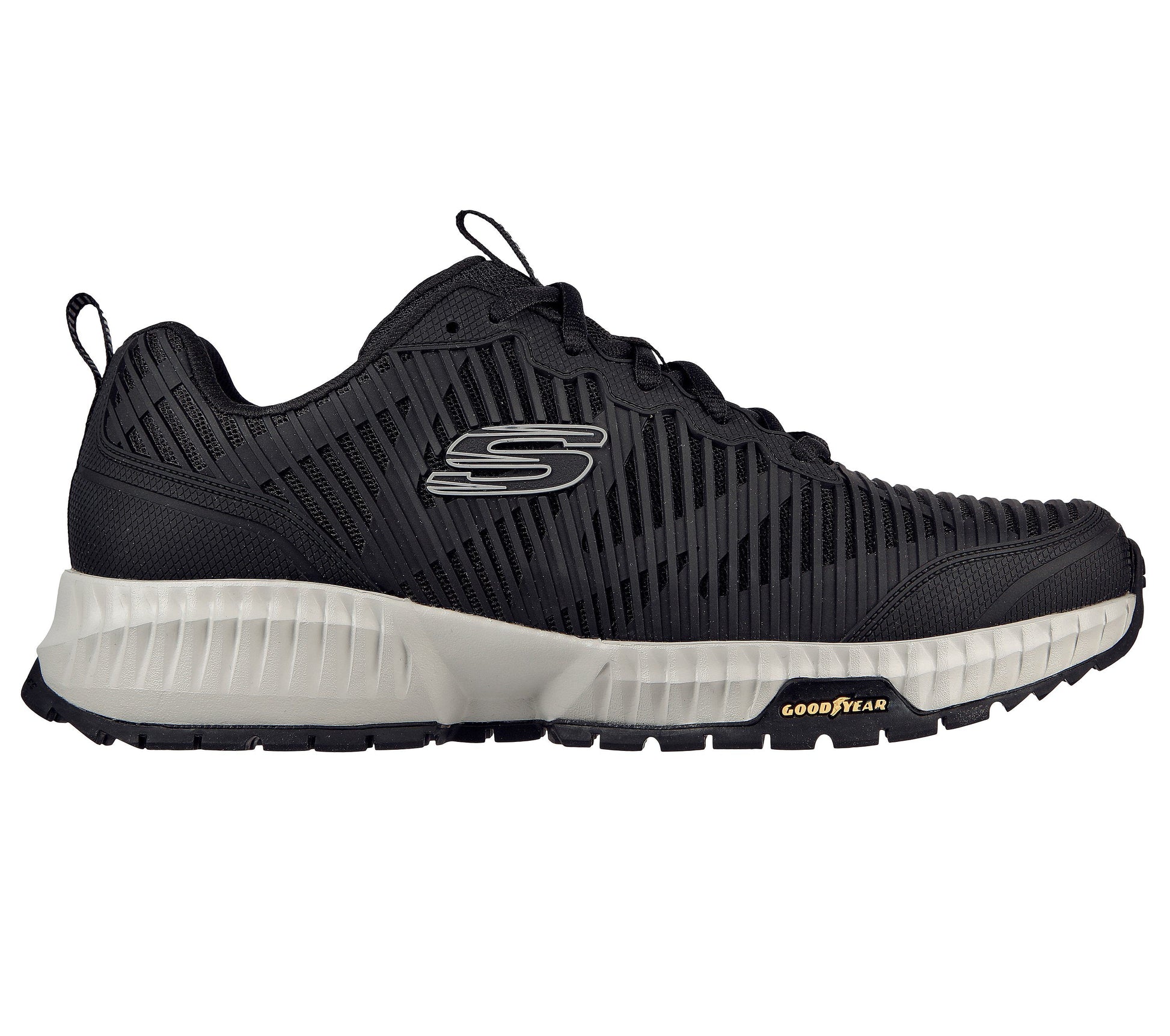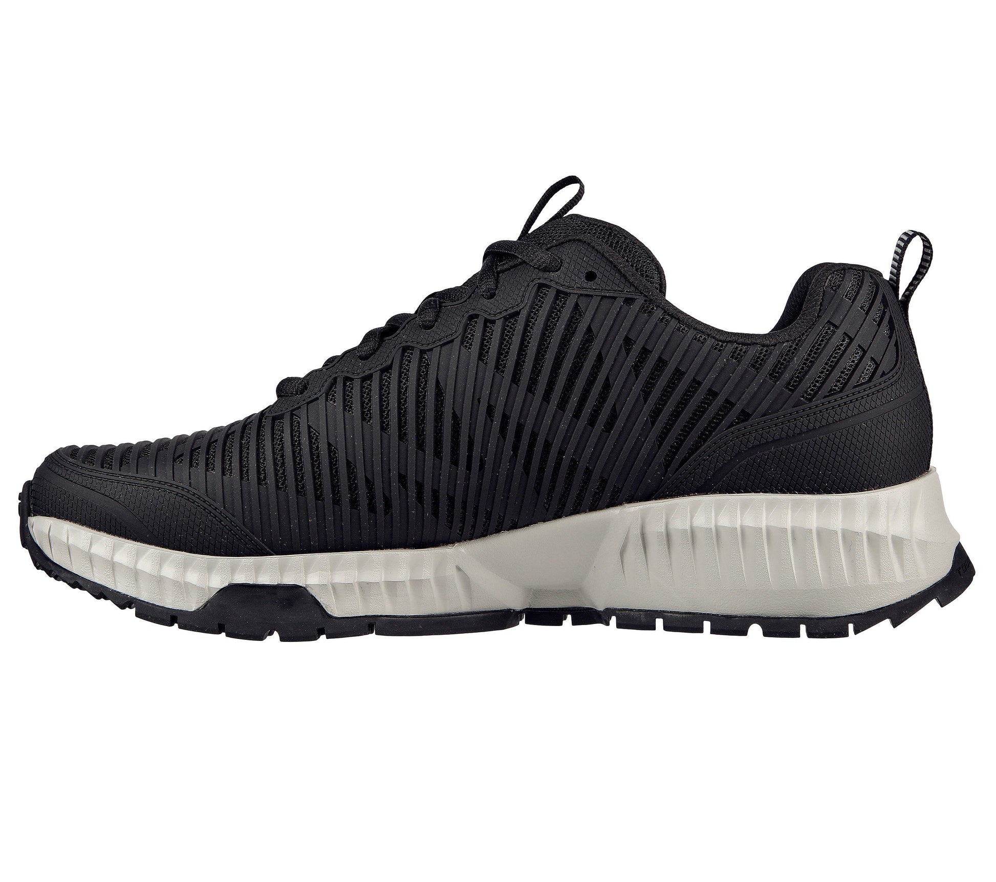 تحرك براحة مرنة مع Skechers Street Flex - Siren. يتميز هذا الحذاء ذو الأربطة بشبكة مسامية وجزء علوي صناعي مع نعل داخلي من Skechers Air-Cooled Memory Foam® ونعل خارجي Goodyear® Performance