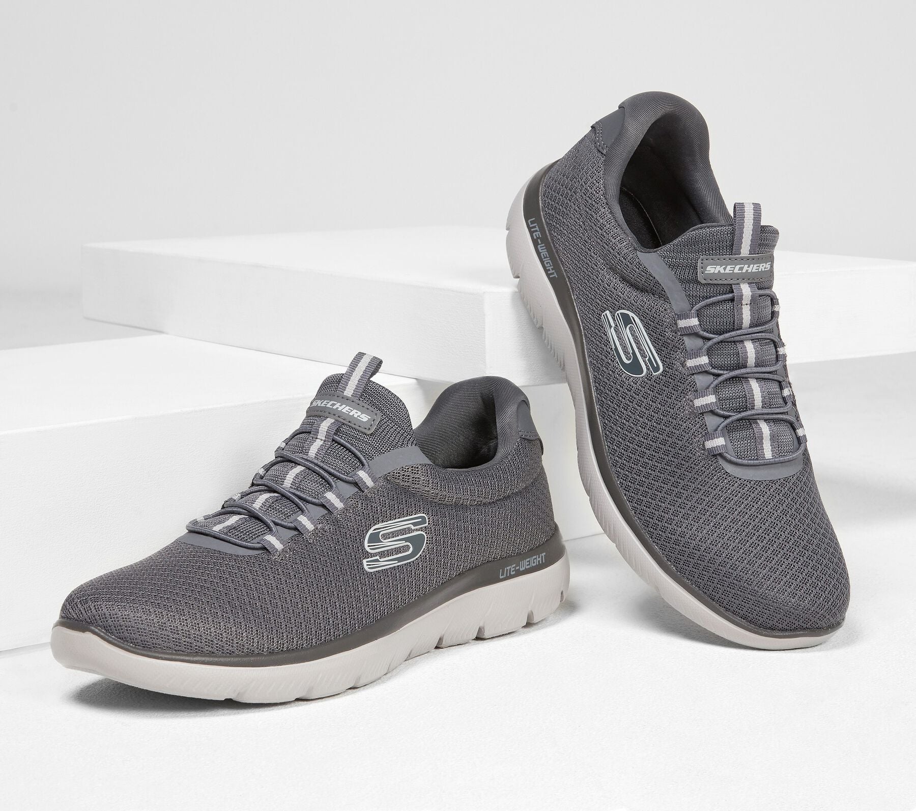 يمكنك الوصول إلى ارتفاعات الأسلوب الرياضي والراحة مع حذاء سكيتشرز ساميتس. يتميز هذا الحذاء الرياضي سهل الارتداء بجزء علوي شبكي مسطح مع رباط أمامي مرن ونعل داخلي مبطن من الإسفنج الذكي.