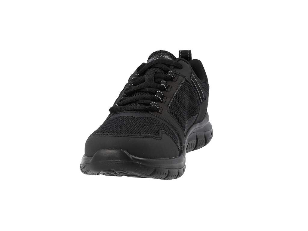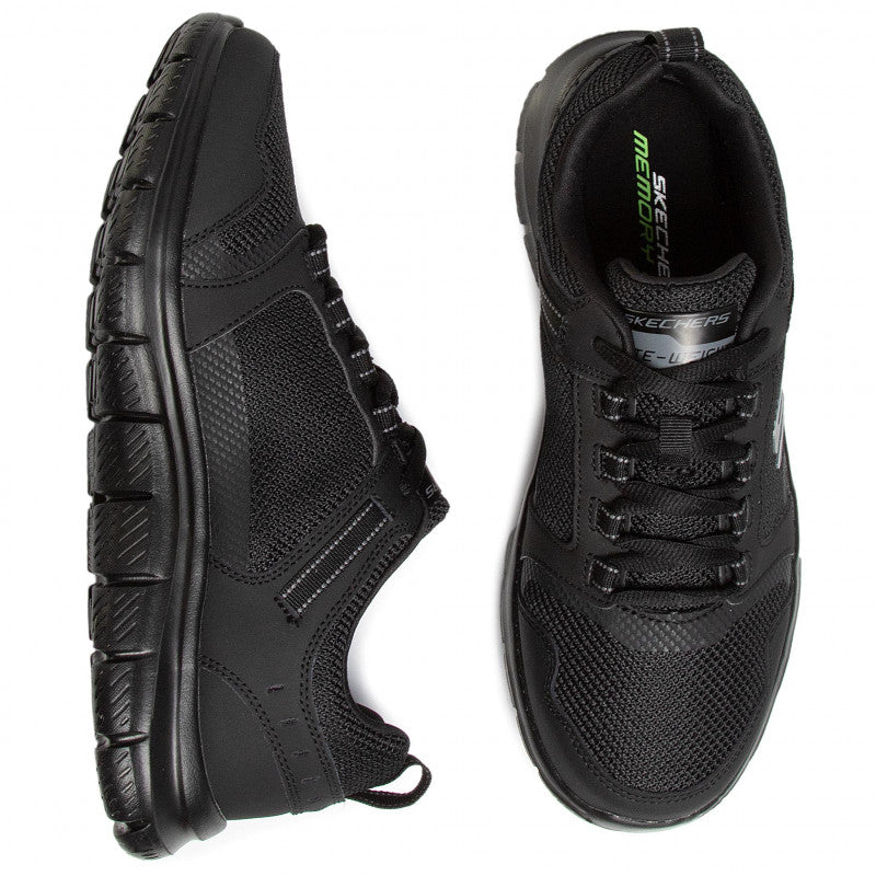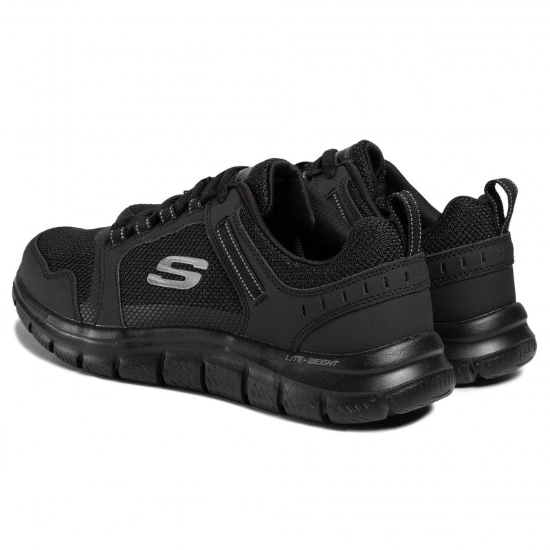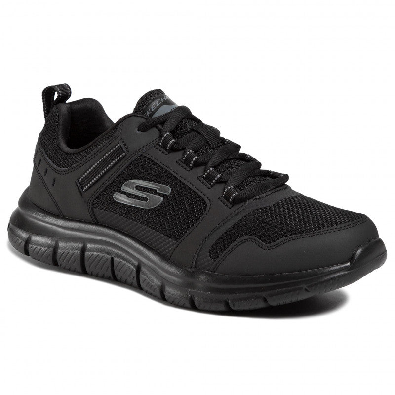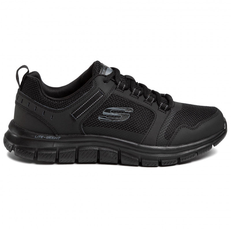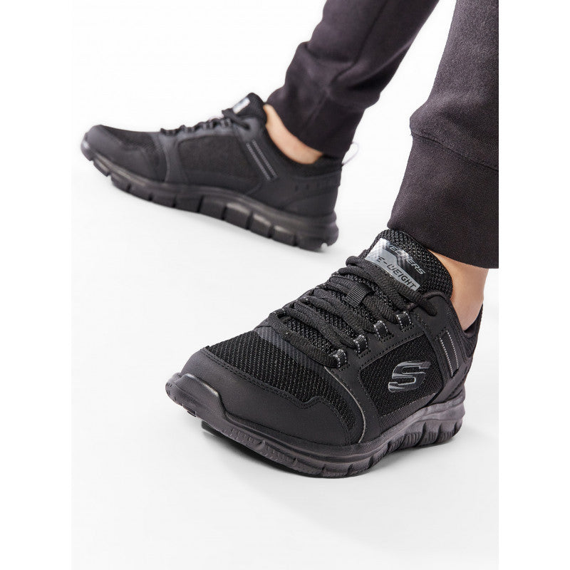 أبقِ عينيك على الطراز الرياضي والراحة المبطنة مع حذاء سكيتشرز تراك. جلد ناعم وجزء علوي شبكي في حذاء رياضي رياضي برباط مع خياطة خارجية ولمسات. نعل داخلي من إسفنج الذاكرة.