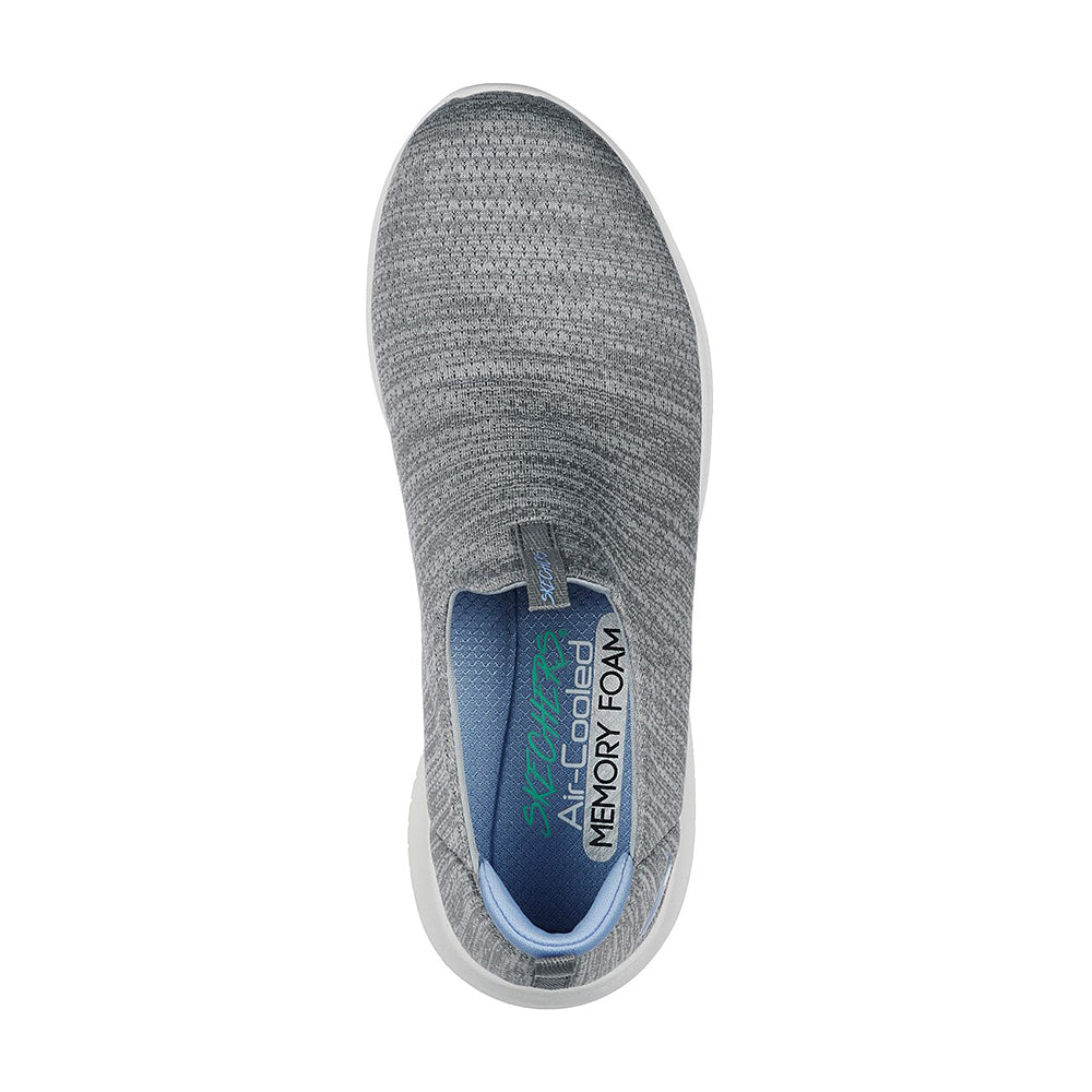 الراحة المرنة والأناقة يجتمعان في حذاء Skechers Ultra Flex - Gracious Touch. يتميز هذا الحذاء الرياضي سهل الارتداء بجزء علوي شبكي ناعم ومنقط ونعل داخلي مبطن بتقنية Air-Cooled Memory Foam®.