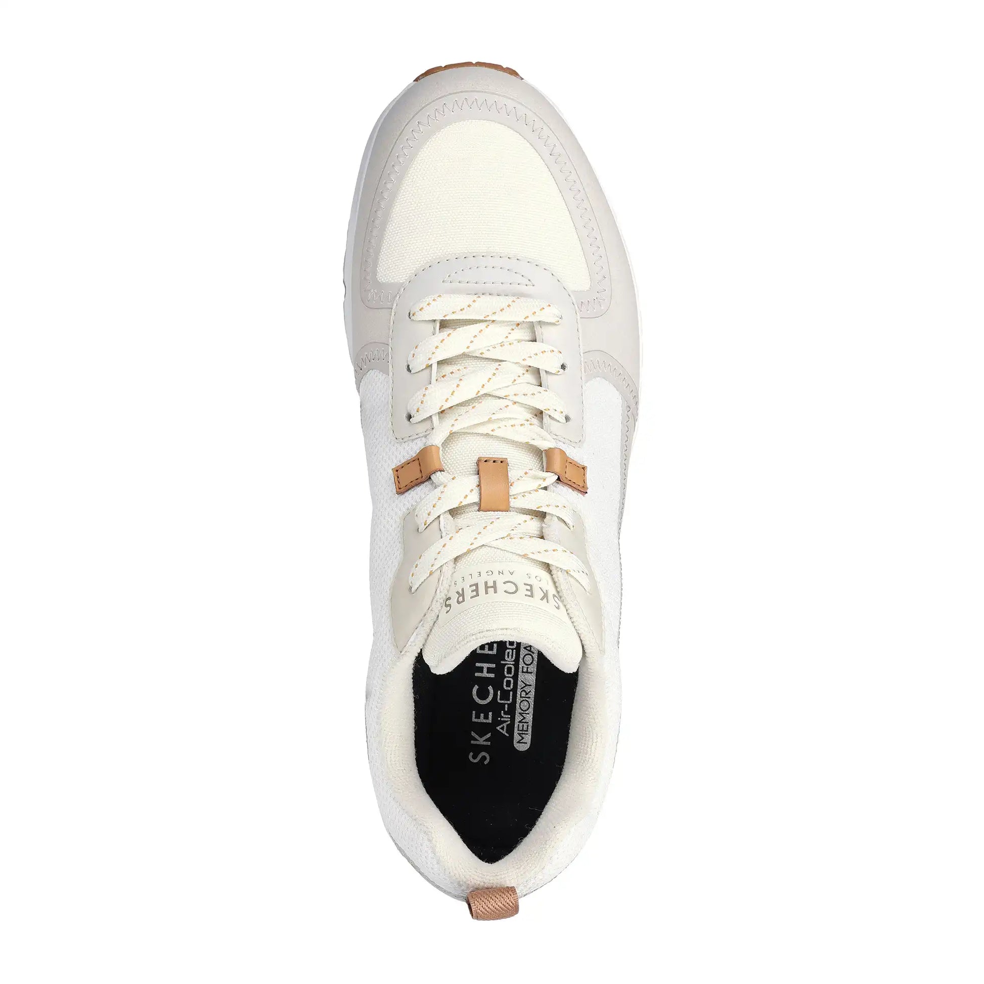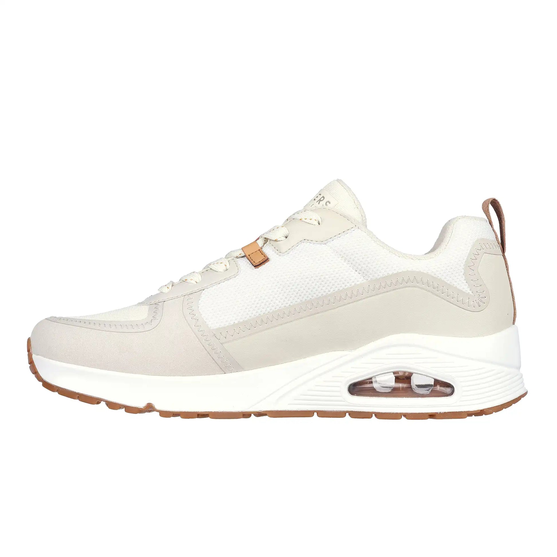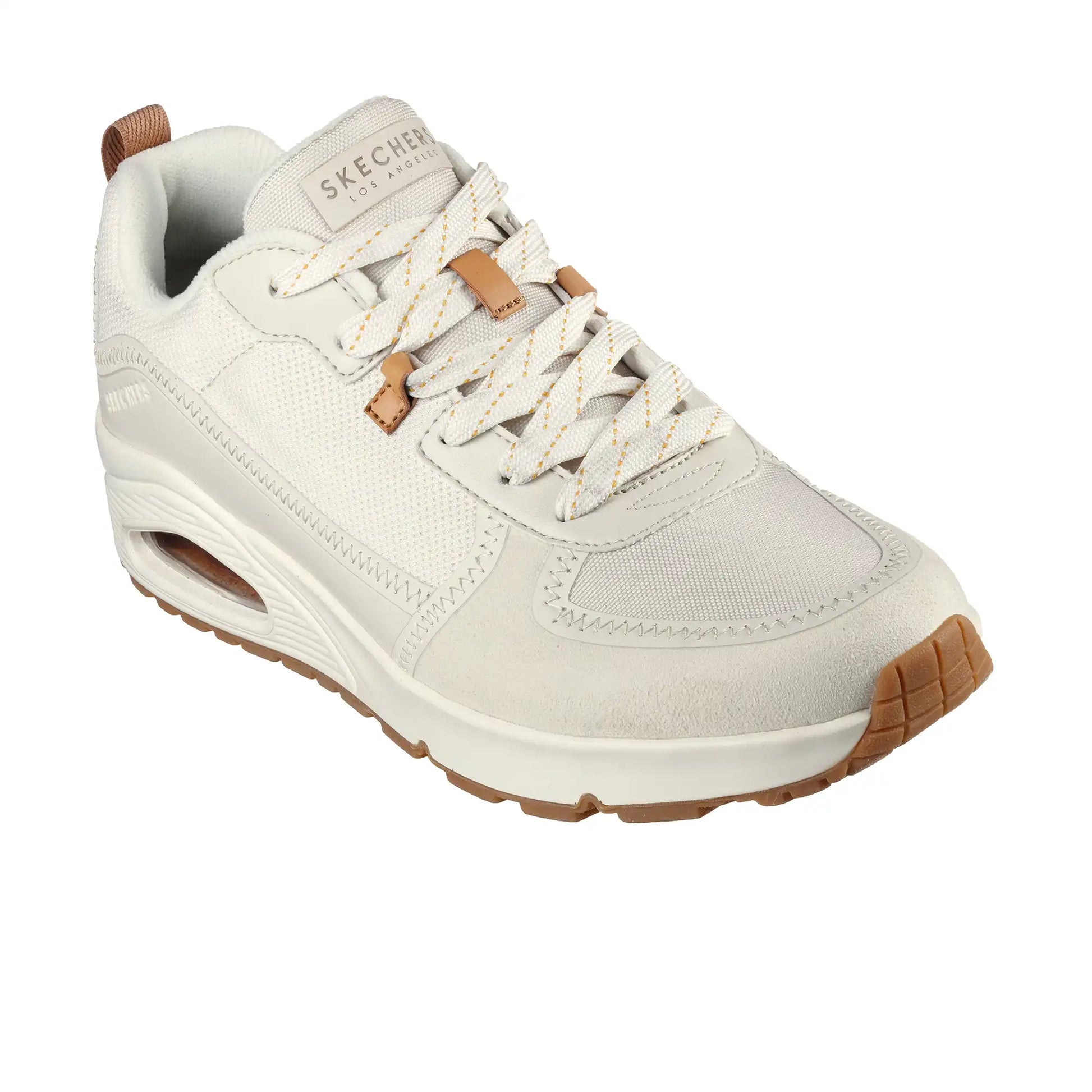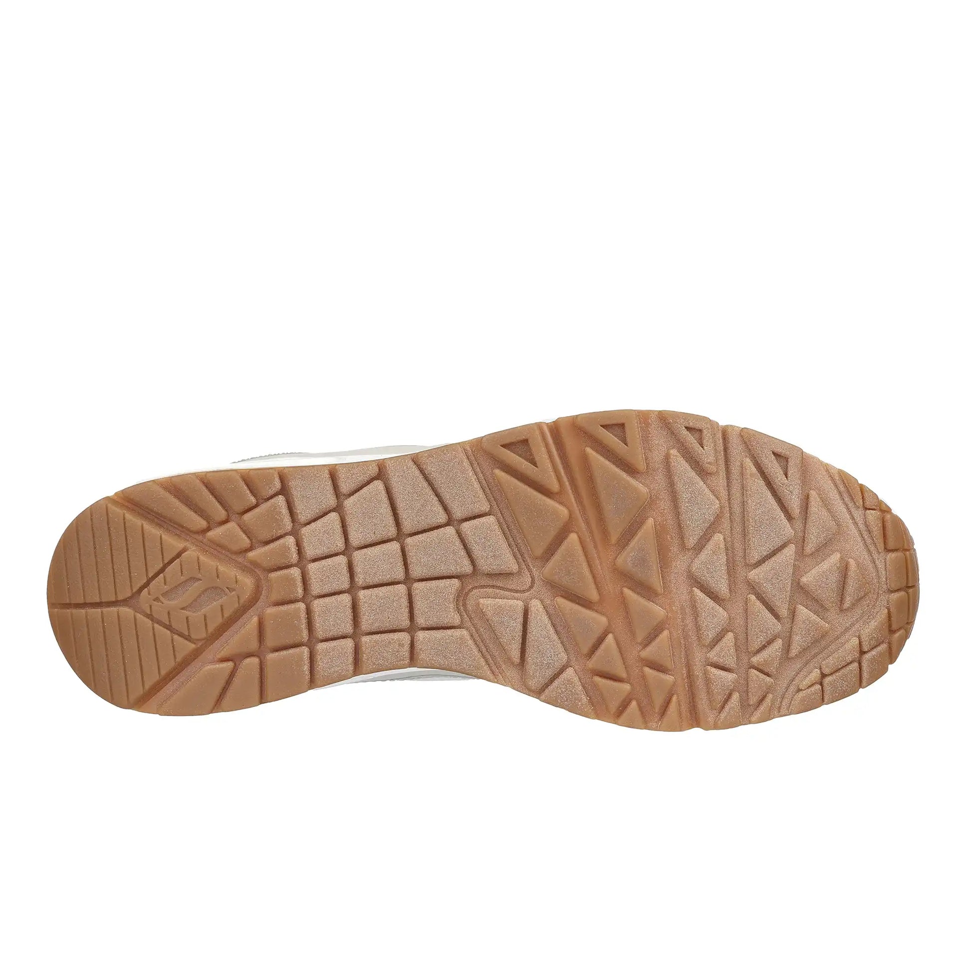Restez cool avec un classique tendance dans la Skechers Street™ Uno – Layover. Ce modèle athlétique tendance à lacets présente une tige en cuir synthétique et en textile avec des détails en zigzag thermofusibles, une semelle intérieure Skechers en mousse à mémoire de forme aérée® et une semelle intermédiaire Skech-Air® visible.