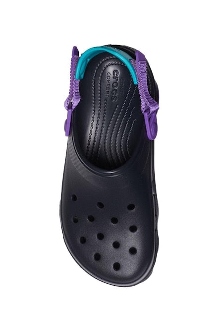 Voyager. Exploration. Aventures proches et lointaines. Le sabot tout-terrain classique est prêt à tout, même dans les environnements les plus difficiles. Avec une semelle extérieure plus robuste et une sangle turbo réglable, le sol sous vos pieds n'a jamais été aussi surmontable. La construction légère en Croslite™ en fait un choix pratique et compressible pour toutes les sorties. Il est temps de passer à la transmission intégrale. Retournez cette sangle et allez trouver votre plaisir !
