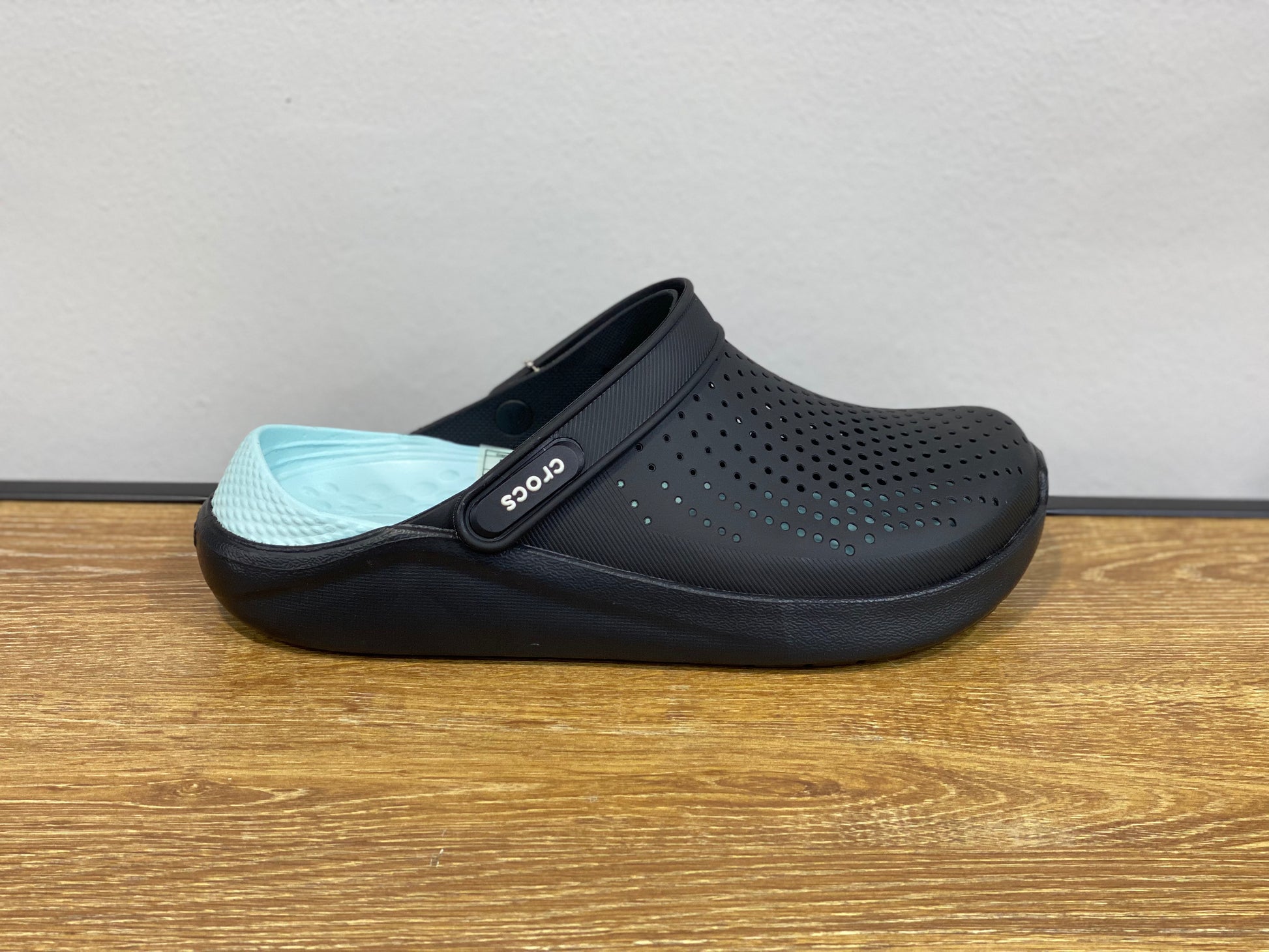 crocs noir et bleu ciel