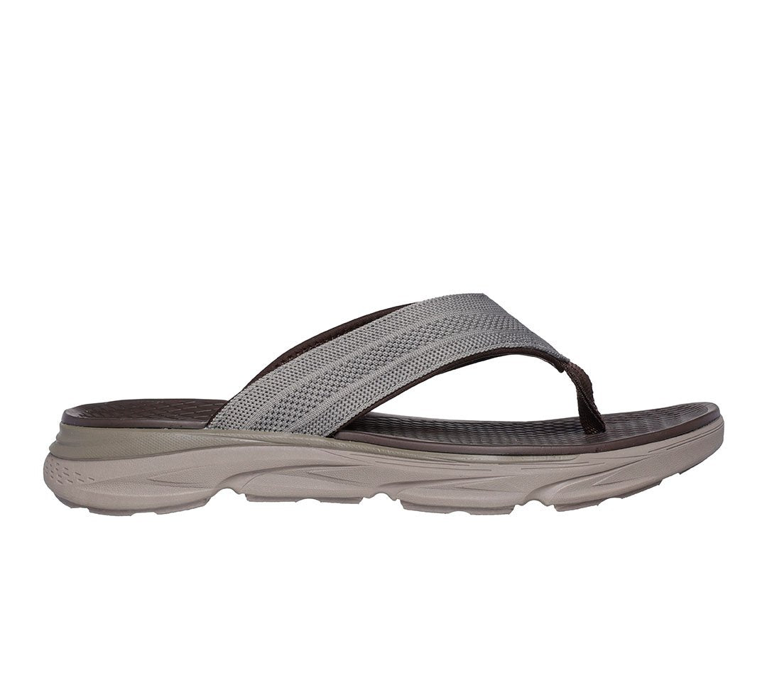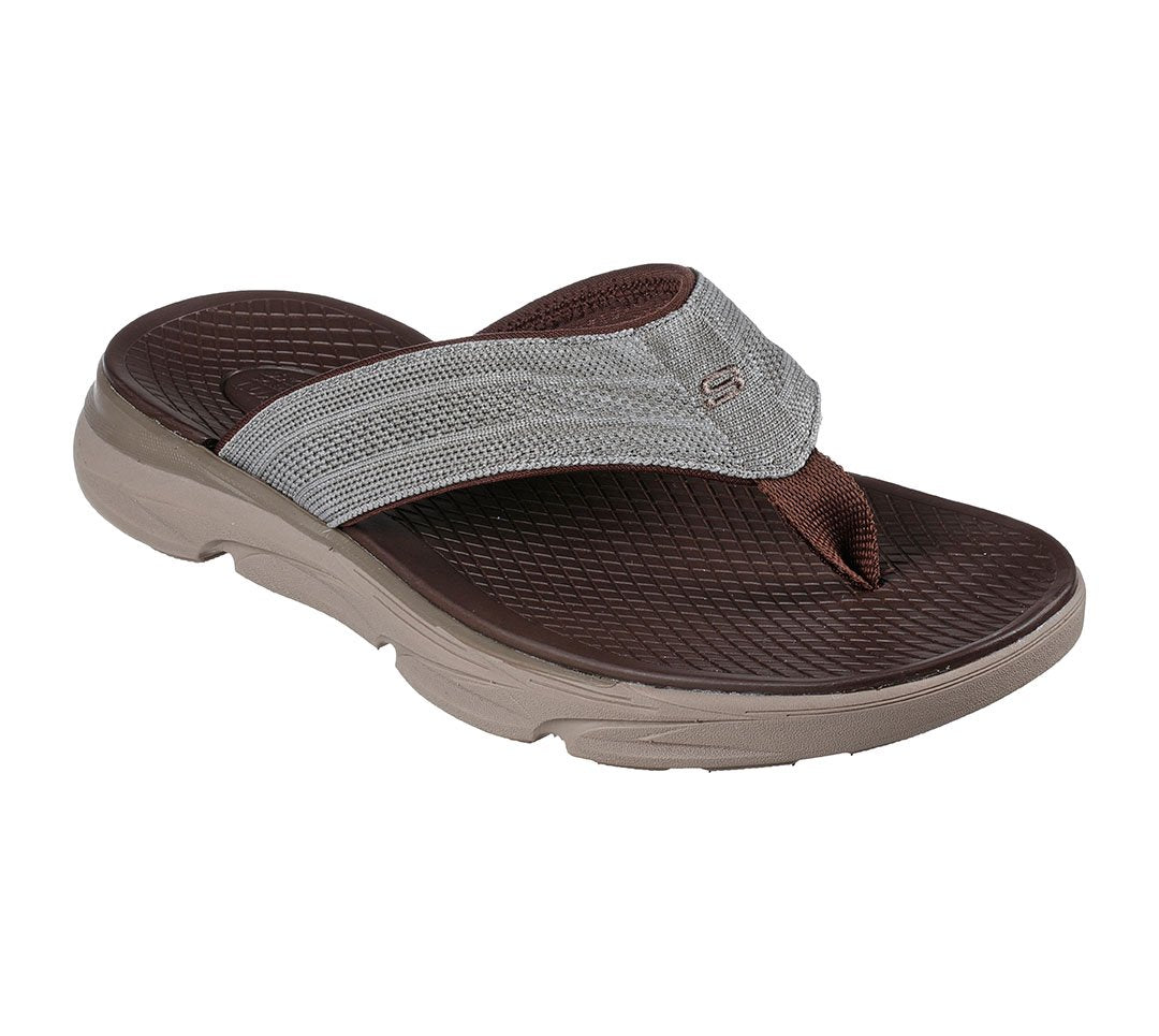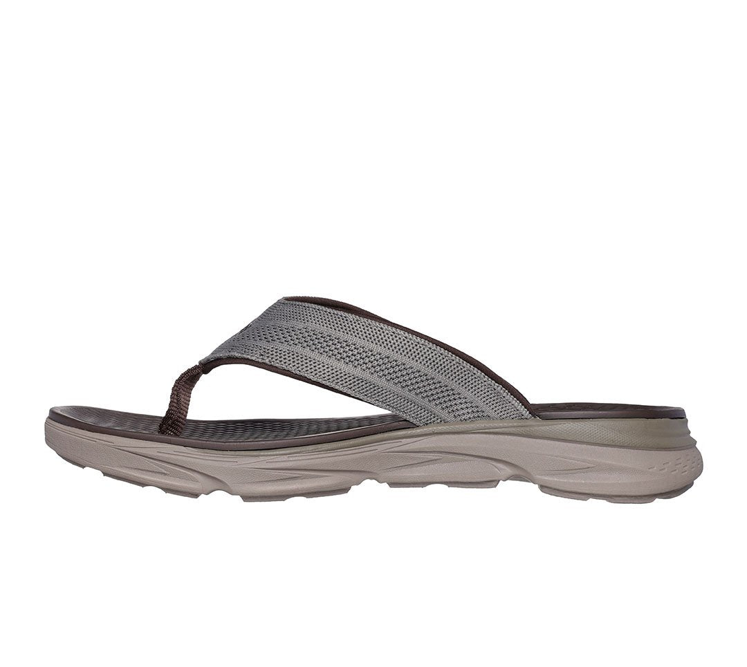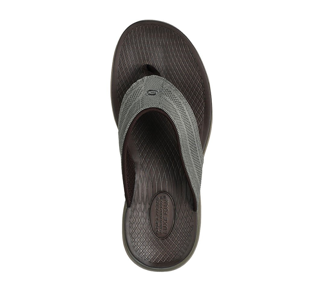 Le confort des week-ends est assuré par les Skechers Relaxed Fit® : Delmont SD – Almedo. Cette sandale décontractée de style tong est dotée d’une tige en textile tissé à 3 points et d’une assise plantaire Luxe Foam® matelassée.