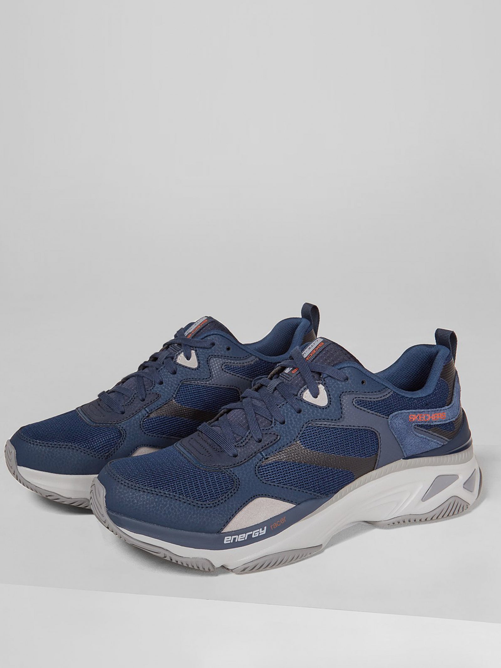 Les baskets mode SKECHERS Energy Racer Lindora pour hommes sont dotées d'une tige en cuir suédé lisse synthétique et en maille tricotée. Lacets sur le devant pour un ajustement sûr. Col et languette rembourrés. Doublure de chaussure en tissu doux Semelle intérieure confortable coussinée en mousse à mémoire de forme refroidie à l'air1 Semelle intercalaire de soutien légère absorbant les chocs. Semelle intercalaire sculptée et profilée Energy Racer avec détail logo1. Semelle extérieure en caoutchouc souple.