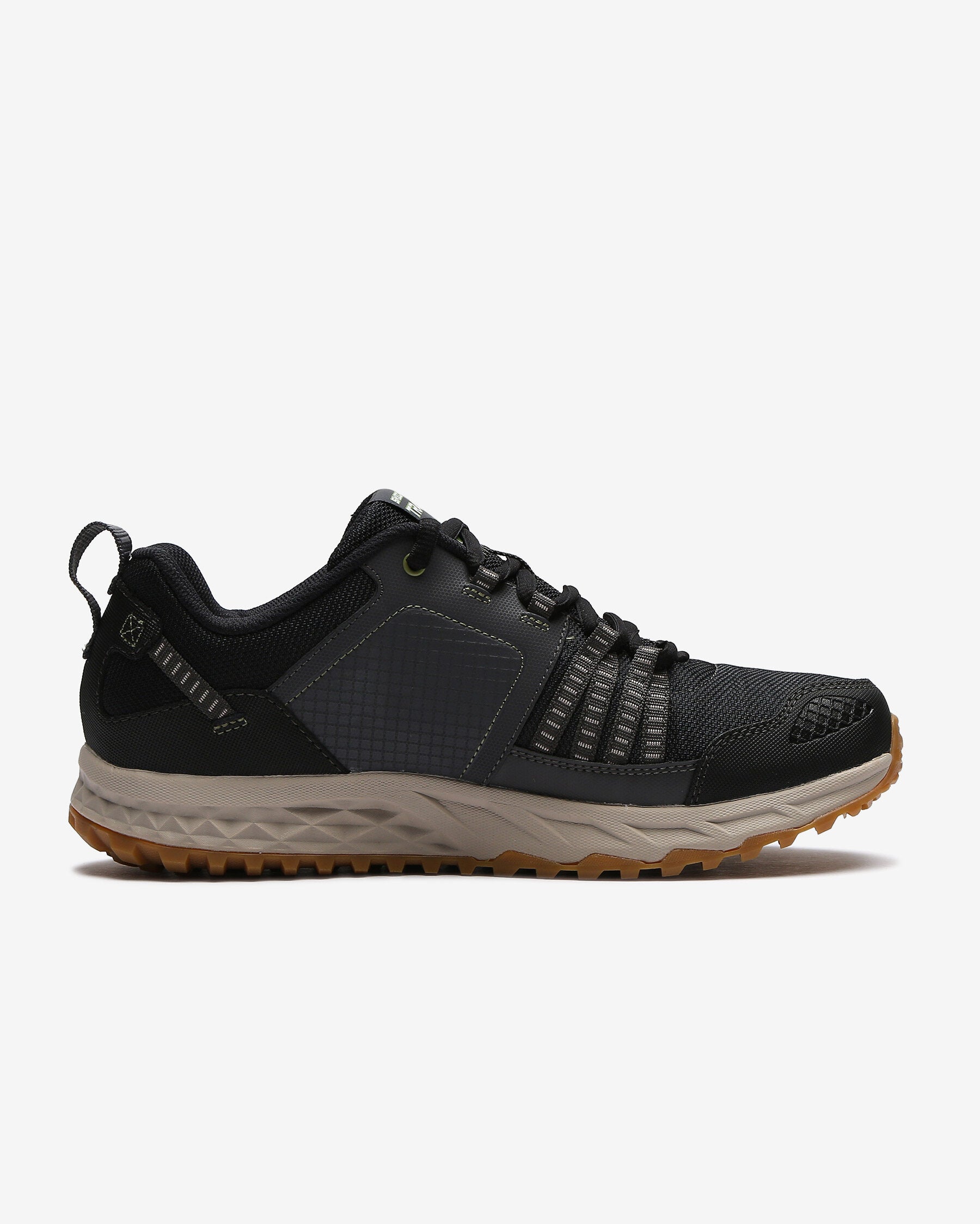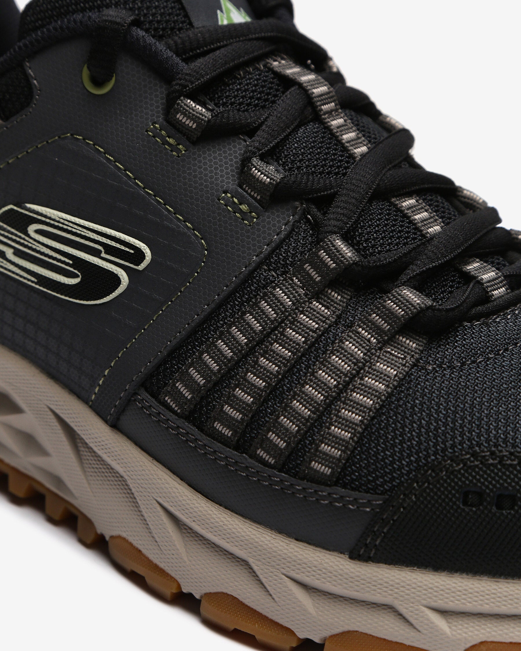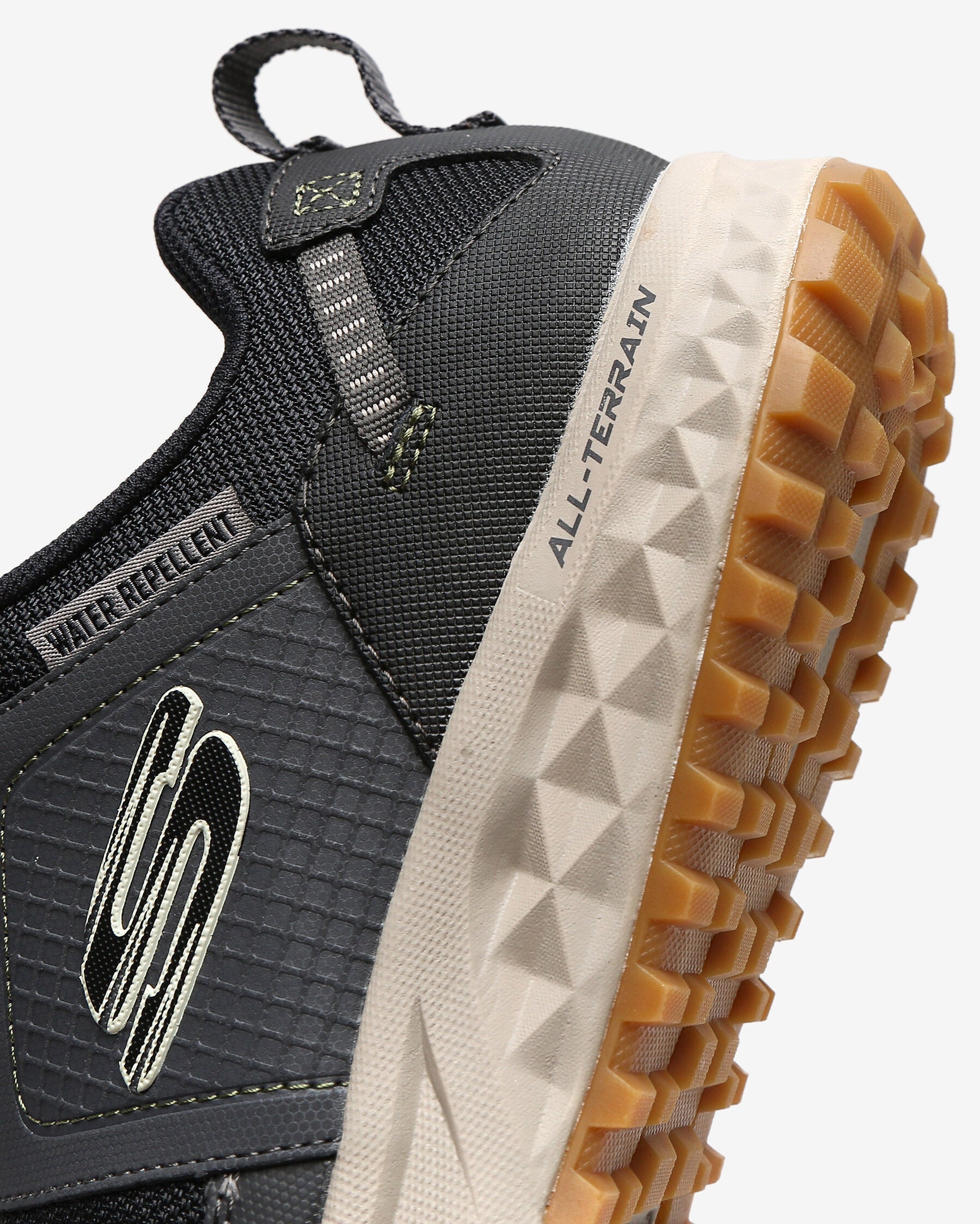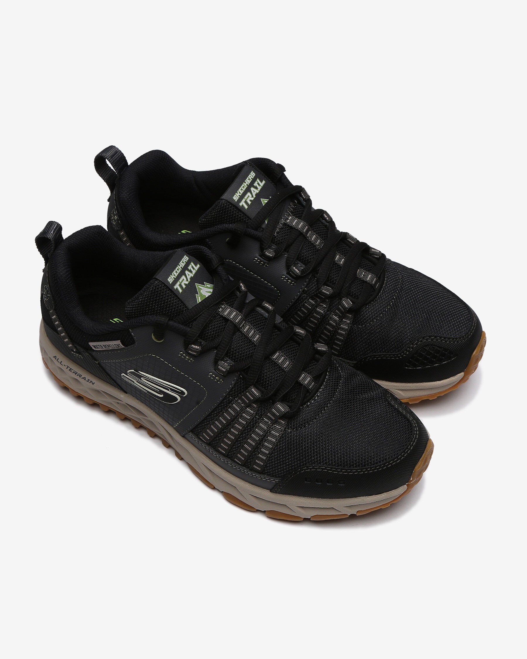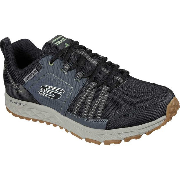 Apprivoisez le terrain avec style et confort avec la chaussure SKECHERS Escape Plan. Tige en cuir, synthétique et mesh dans une sneaker de marche et d'entraînement athlétique à lacets avec surpiqûres, superposition et accents de perforation. Semelle intérieure en mousse à mémoire de forme refroidie par air.