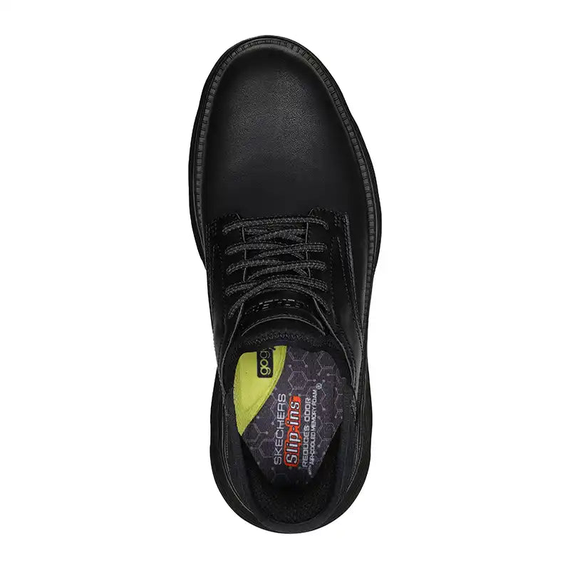Maîtrisez votre efficacité avec un look business casual confortable en portant les Skechers Hands Free Slip-ins® : Garza – Gervin. Ce style Oxford TOUCHLESS FIT® comprend une tige en cuir lisse avec des lacets extensibles, un panneau de talon moulé Skechers Slip-ins®, une semelle intérieure Skechers Air-Cooled Memory Foam® infusée de charbon et un Skechers Goga Mat Arch™ pour un soutien supplémentaire.