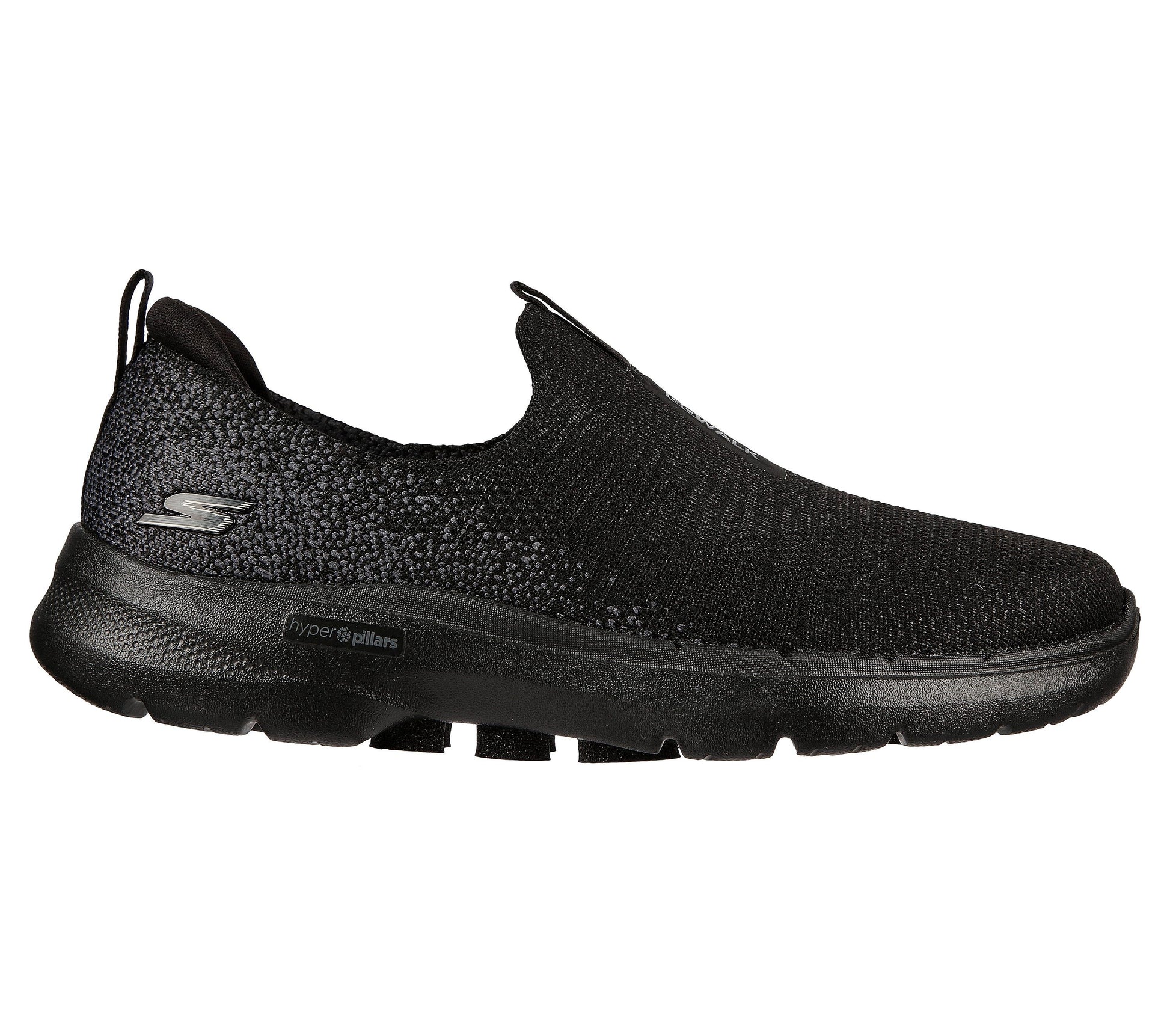 Élevez votre confort avec les chaussures Skechers GOwalk® 6. Cette chaussure à enfiler comprend une empeigne à mailles sportive, une semelle intérieure confortable Air-Cooled Goga Mat®, une semelle intercalaire légère et coussinée ULTRA GO™ et une technologie Comfort Pillar®; à rebond élevé pour plus de soutien.