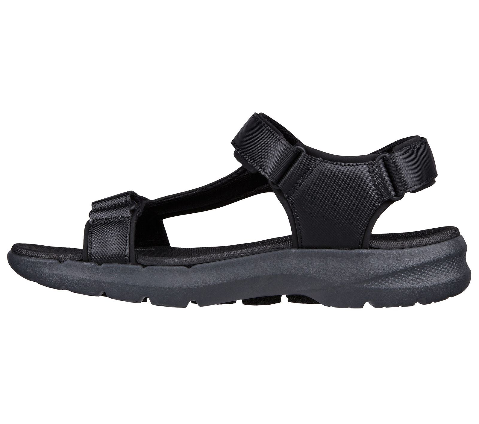 Le style par temps chaud bénéficie d'un confort amélioré avec la sandale Skechers GO WALK® 6. Cette sandale de style rivière comprend une tige synthétique avec des sangles réglables, une assise plantaire confortable Goga Mat® profilée, un amorti léger ULTRA GO® et Hyper Pillar Technology ™ pour un soutien accru.