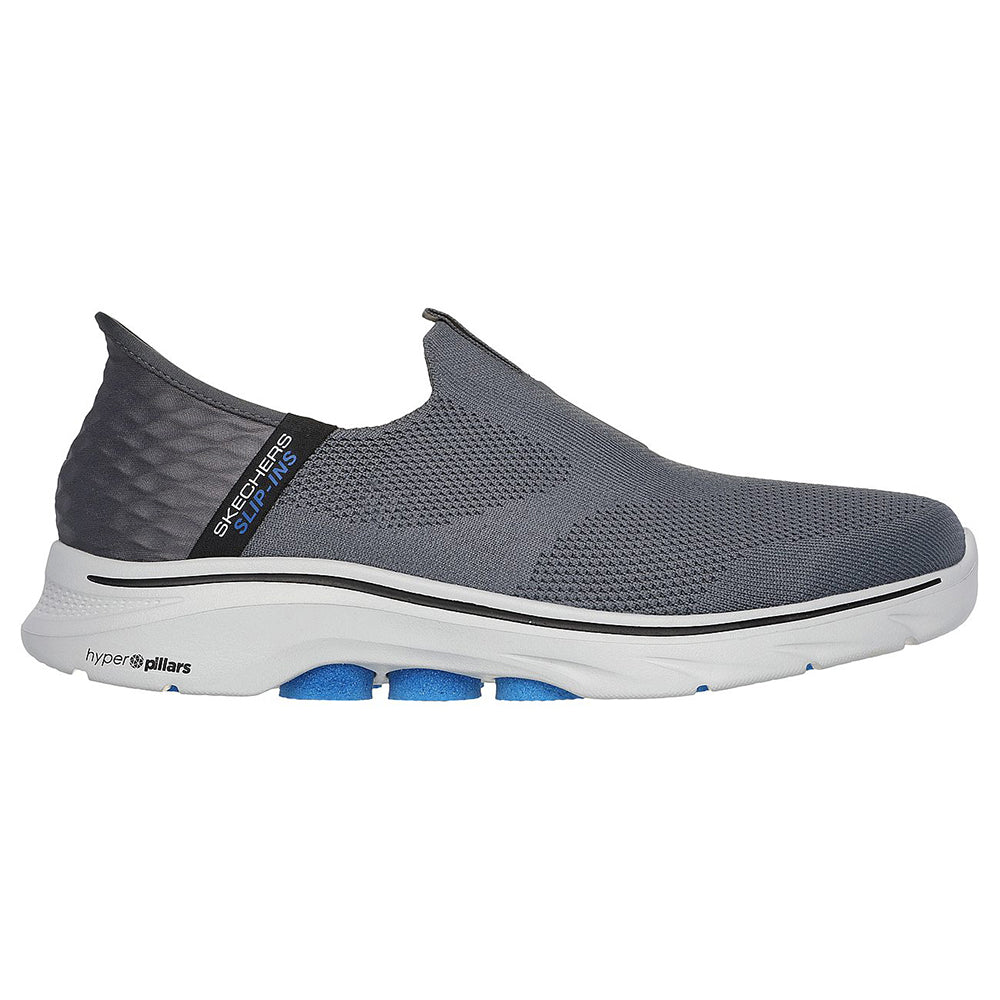 Entrez dans un confort de marche pratique et un amorti en portant Skechers Hands Free Slip-ins® : GO WALK 7™ - Easy On 2. Conçu avec notre oreiller à talon exclusif™, ce style sportif dispose d'une tige en maille et synthétique, d'une semelle intérieure Skechers Air-Cooled Memory Foam®, d'un amorti ULTRA GO® léger et d'une technologie Hyper Pillar Technology™ à rebond élevé pour un soutien supplémentaire.