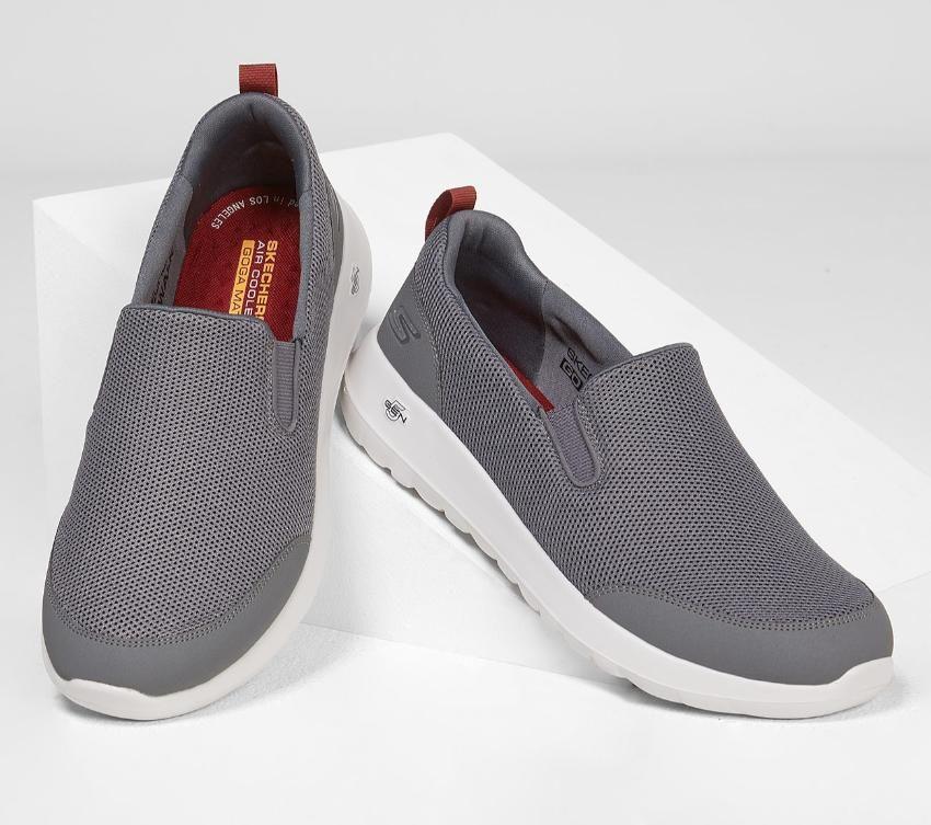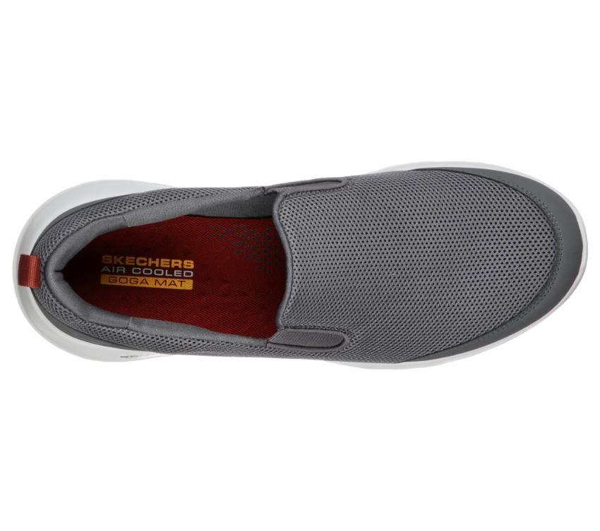 Maximisez le confort avec la conception de soutien de Skechers GOwalk® Max - Clinched. Ce style de marche athlétique à enfiler est doté d'une tige en mesh avec une semelle intérieure Air-Cooled Goga Mat ™ et une semelle intermédiaire amortissante 5GEN® légère.