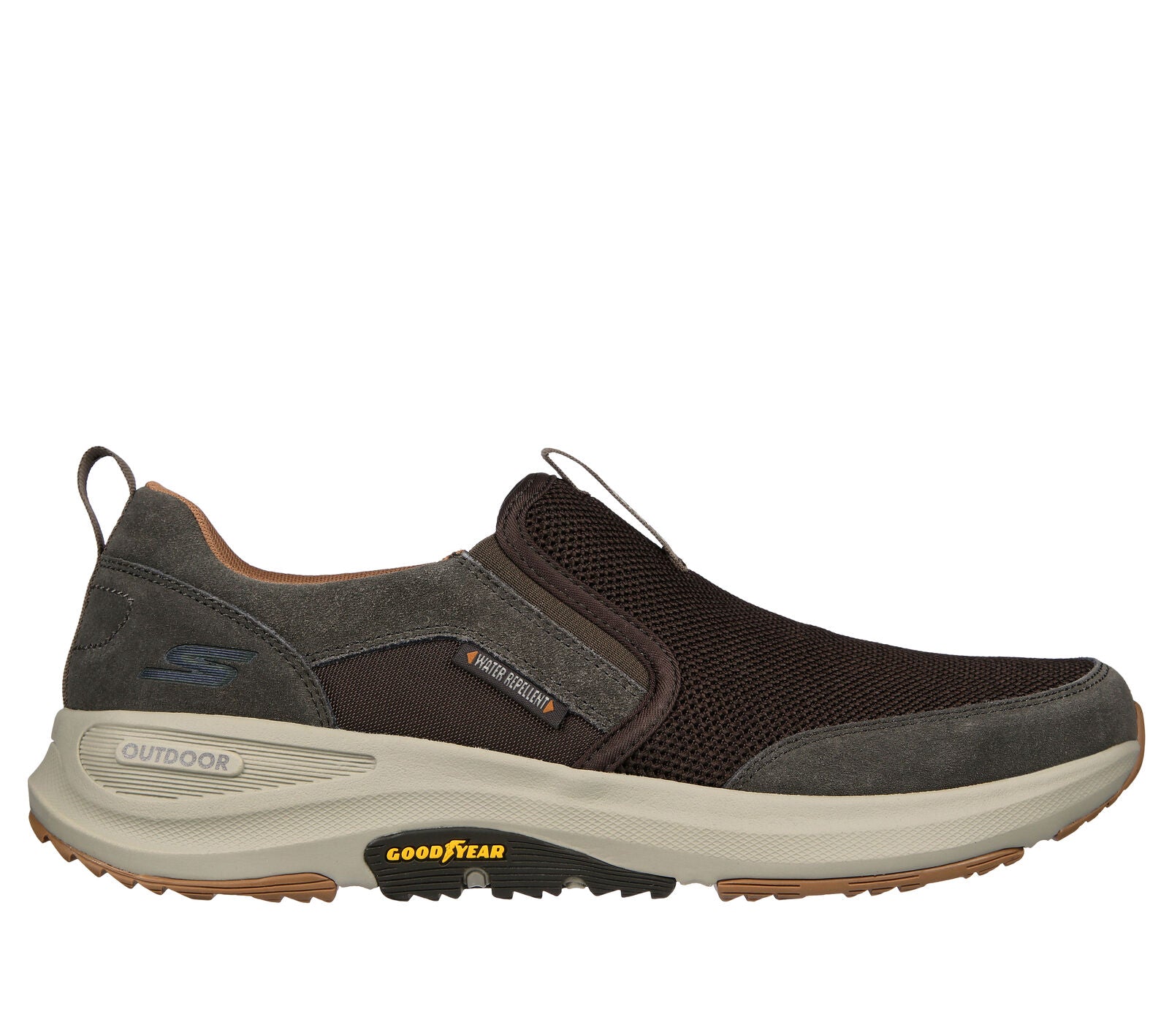 Explorez les sentiers de la nature dans un confort amorti durable avec la chaussure Skechers GO WALK Outdoor - Andes. Cette sneaker de marche à enfiler est dotée d'une tige en maille athlétique respirante et de garnitures en cuir avec une semelle intérieure coussinée en mousse à mémoire de forme et une semelle intercalaire légère ULTRA GO.
