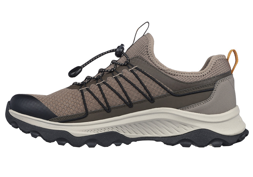 Admirez les sites et ressentez le confort en portant Skechers Relaxed Fit® : Montello - Brockden. Ce pull-on d'extérieur spacieux est doté d'une tige en maille alvéolée avec des superpositions synthétiques, des détails sur les quarts de panneau, un devant en dentelle extensible réglable et une semelle extérieure en caoutchouc Goodyear® durable.